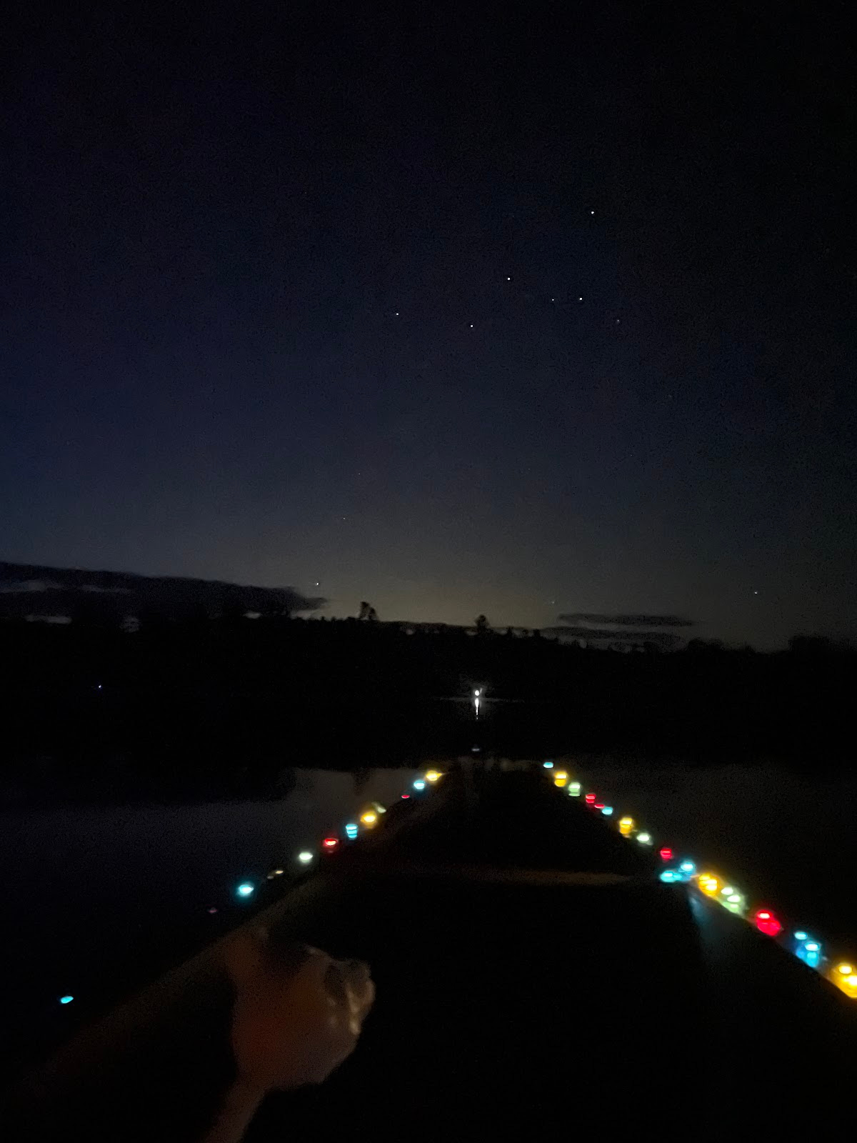 This afternoon, Bones and I were going through our supplies and Bones found our Christmas lights, that we use when we go night paddling. Bones was so excited to go that I didn’t have the heart to turn him down.